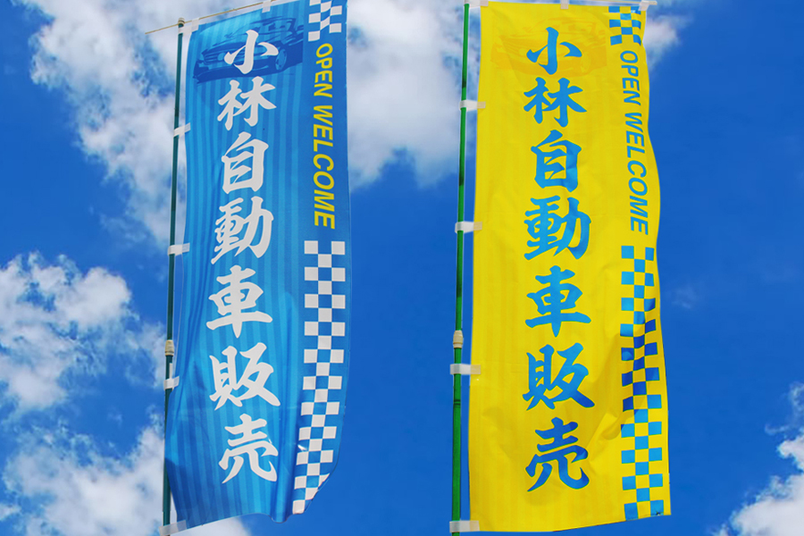 時期毎にお知らせしたり、劣化も激しいのぼりを新たなデザインで制作いたします。